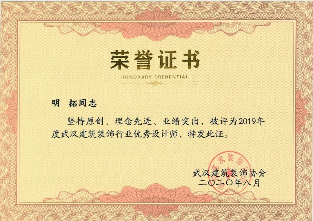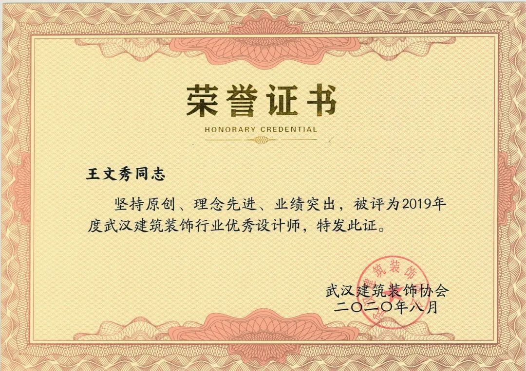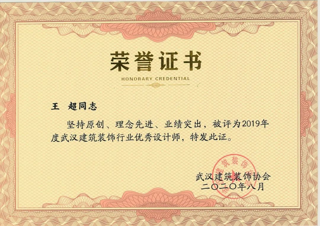 我司王超、李进、明拓、唐忠丽、王文秀、曾威被评为2019年度武汉建筑装饰行业优秀设计师