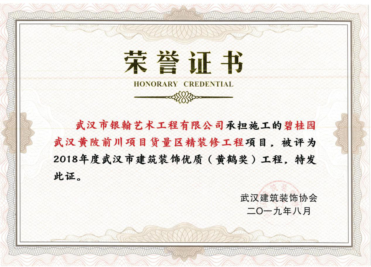 碧桂园武汉黄陂前川项目货量区精装修工程 黄鹤杯