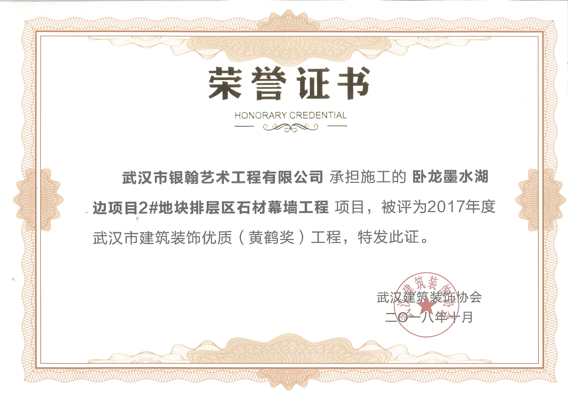 卧龙墨水湖2#地块排层区石材幕墙工程 黄鹤杯