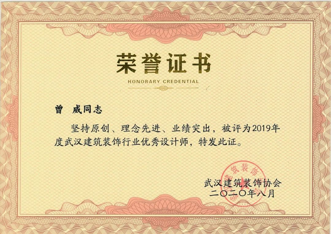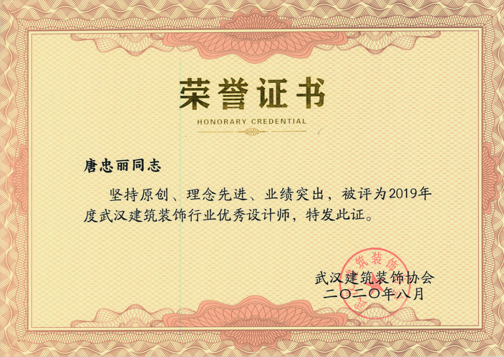 我司王超、李进、明拓、唐忠丽、王文秀、曾威被评为2019年度武汉建筑装饰行业优秀设计师