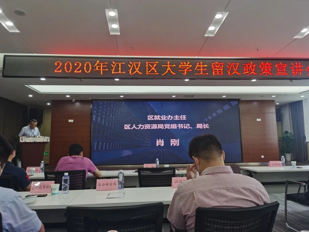 参加此次会议的有区委人才办主任、区委组织部副部长、区委老干局局长任恒丽,区就业办主任、区人力资源局党组书记、局长肖刚,区人力资源局、区科学技术和经济信息化局、区住房保障和房屋管理局、江汉社保处、区商务局、武汉金融街管委会分管领导及业务科室负责人,区公安分局人口管理大队负责人,相关街道、开发区分管领导及业务科室负责人,区行政审批局大学生服务专窗工作人员代表,以及辖区130家重点企业、中小微企业、人力资源服务机构、双创平台机构人力资源部门负责人。