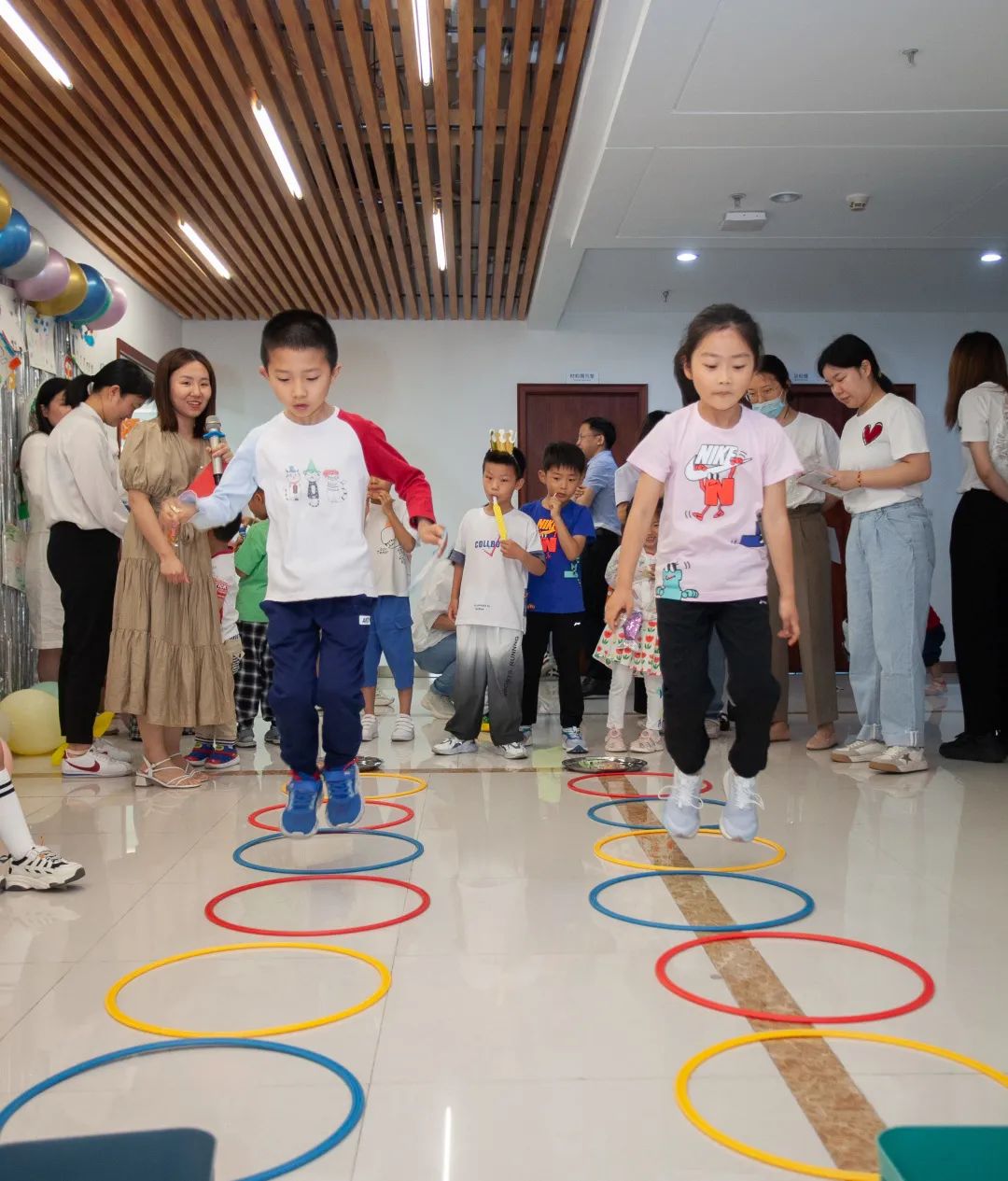 这次活动一共给宝贝们准备了5个游戏,分别是定点投篮、小兔运零食、竞速拼图、找爸爸(妈妈)、螃蟹过河。游戏结束以后,小朋友可根据获得贴贴的数量,兑换相应的礼品。办公室在孩子们的欢声笑语中立马变成了一片欢乐的海洋。