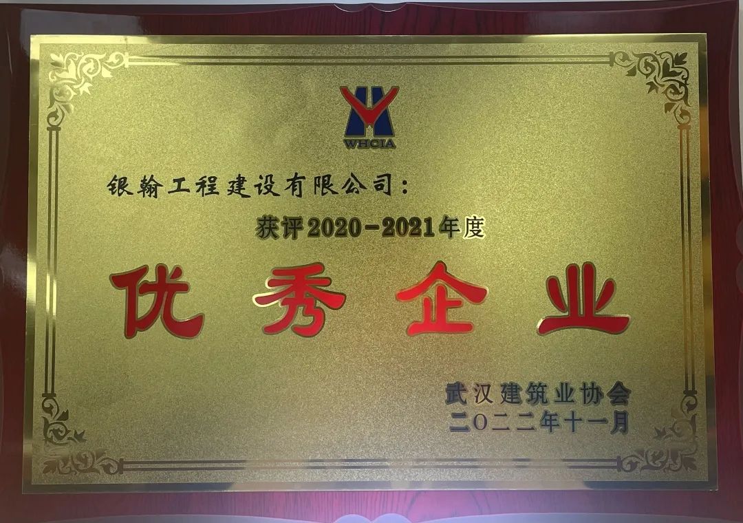 银翰工程建设有限公司获评武汉建筑业协会2020-2021年度优秀企业