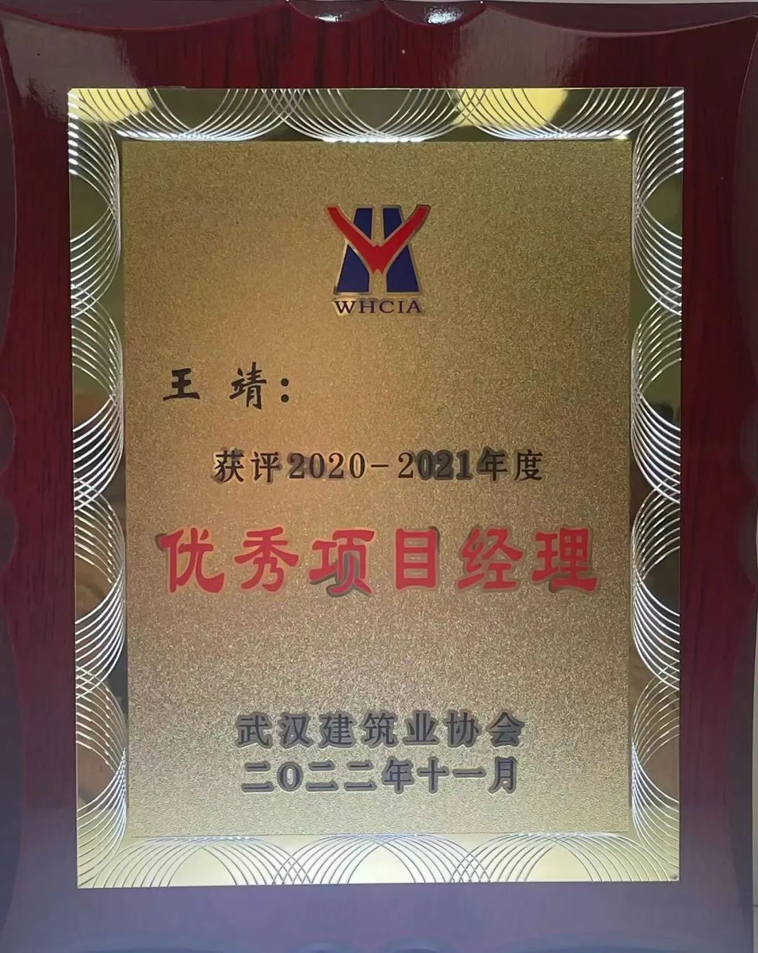 王靖先生获评武汉建筑业协会2020-2021年度优秀项目经理
