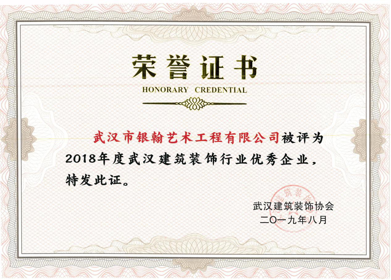 2018年度先进企业证书